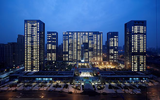 在城市公寓的营造上,蓝城考虑到是城市和谐的天际轮廓线和城市文脉的对接,是更注意从细节去满足中国人不断上升的居住审美需求。蓝城认为,房产品要讲究附加值,没有人文价值的园区无疑是一座“泥城”。营造者们应该为人们提供安定、美好的生活的氛围,一个交流、活动的场所。这对设计师来说,则意味着要花更多的心血和工夫。在很多高层公寓中,设计师们将门厅、连廊以及一些半室内半室外的空间安排成酒吧、茶座等供大家交流的场所、空间,尽量营造出“天涯若比邻” 的居住氛围,让邻居之间能够自由自在地、无拘无束地交谈。这样的细节在蓝城的营造历程中数不胜数,也成为蓝城特有的营造方式和语言。